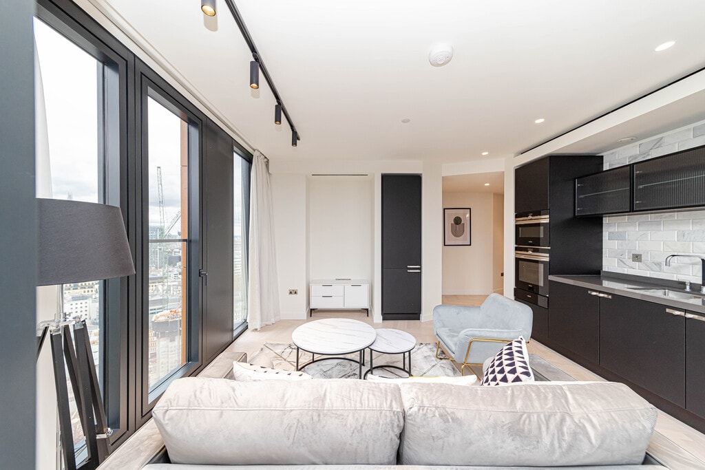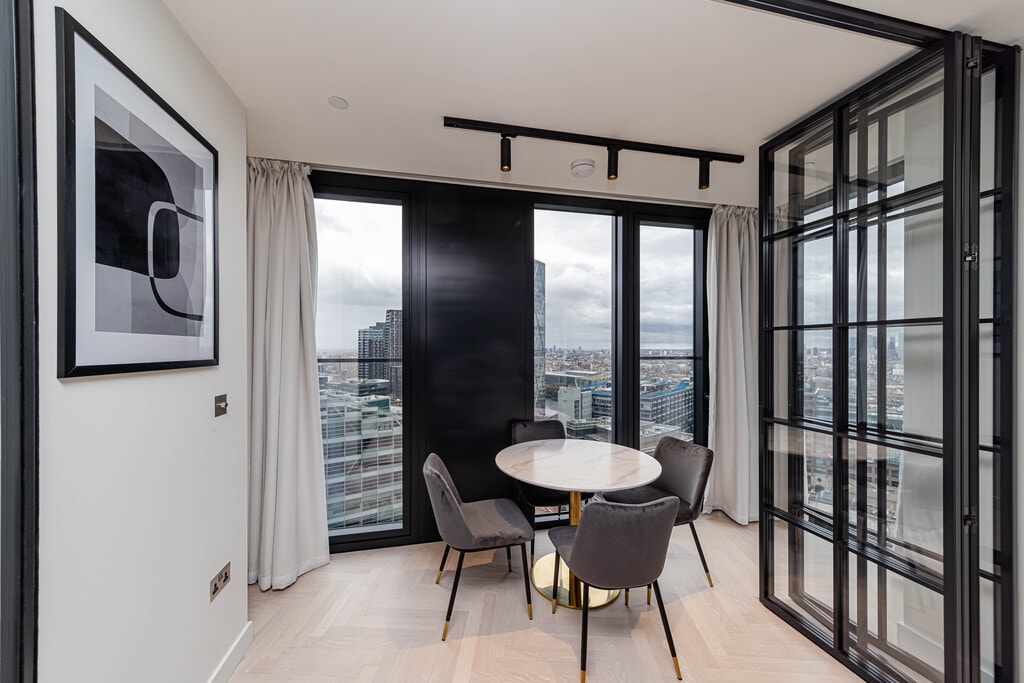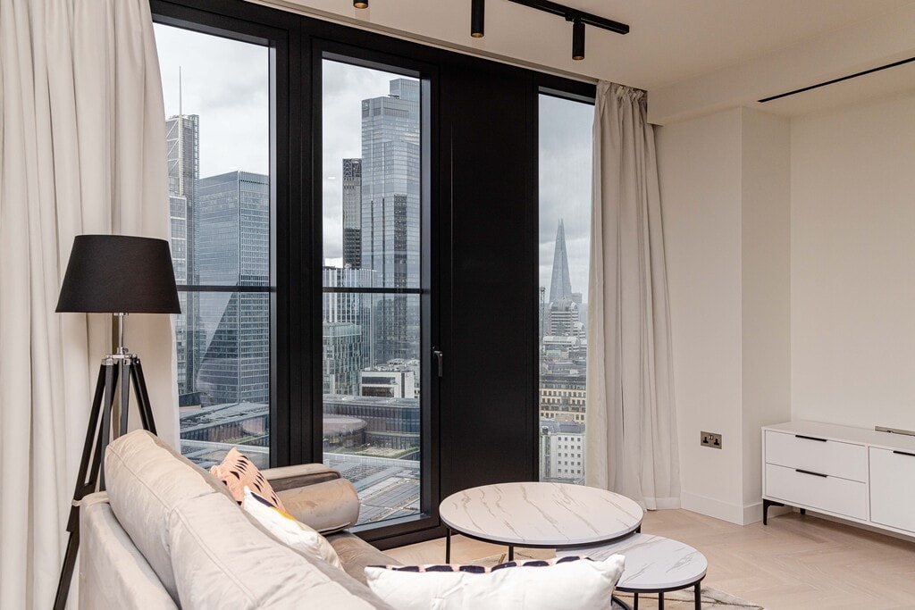 Presenting a stunning flat to rent in Spitalfields. The property is on Sun Street and comprises 2 bedrooms and 2 bathrooms. Available now, covering 861 sq. ft. in living space and situated on the 23rd floor, this modern property comes with floor-to-ceiling windows and ample storage as well as abundant natural light throughout. Residents can further enjoy a residents' lounge, screening room, work hub, gym, private dining room, treatment room, communal terrace, and 24 hr security. Further features and amenities include: - Air conditioning, a rare feature in London - Great view of the surroundings - Open-plan kitchen - Washer - Lift Close to local amenities. The property is located only moments away from Liverpool Street Station.